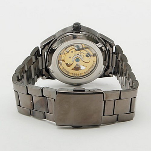 Title : Creux Noir alliage ronde bande Men cadran analogique montre-bracelet mécanique pour le cadeauASIN : B00H08GM20