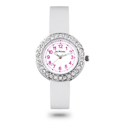 Title : Les minots - HORLOGERIE - Montre enfant bracelet cuir blanc et strass. Etanche 3 ATMASIN : B00C9ZFUYA