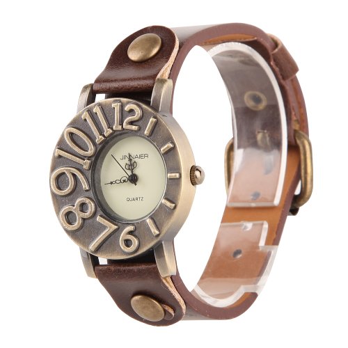 Title : YEVITA Montre fashion ronde quartz affichage analogique bracelet brun avec numéros asymétriquesASIN : B00FJ0LQYK