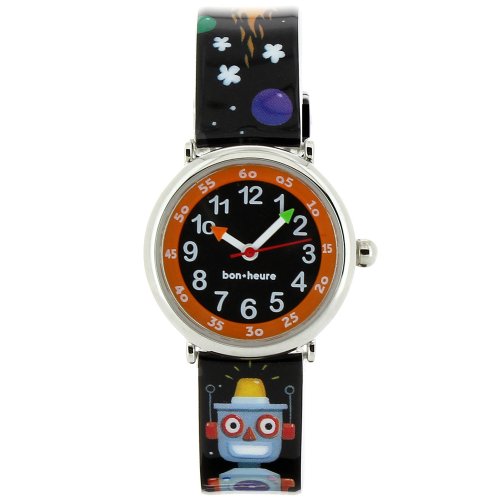 - Montre pour Garçon à mouvement Quartz - Bracelet en Plastique Noir