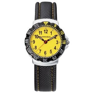 Description : Cette montre enfants unique, robuste, tendance Par Cannibal depuis la gamme active est une montre au fonctionnement élevé qui servira bien à tout enfant. Cette montre est le cadeau idéal pour les garçons. Caractéristiques Produit: * Mouvement à Quartz. * Bracelet Cuir Jaune. * Aiguilles lumineuses. * Etanche 30 mètres. Mesures Bracelet: Cette montre est fixée avec une boucle sur n'importe lequel des trous. * Longueur depuis la fin du bracelet jusqu'à l'autre bout:20.5cm. * Longueur lorsque fixé sur le trou le plus serré:13.5cm. * Longueur lorsque fixé sur le trou le plus écarté:18.5cm. Egalement livrée avec: * Une boîte de présentation. * Garantie de 2 ans. 1