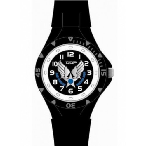 Description : Mouvement quartz - Affichage analogique - Boitier polyuréthane rond - Fond noir - Bracelet caoutchouc noir - Verre minéral - Boucle Ardillon - Etanche 3 ATM