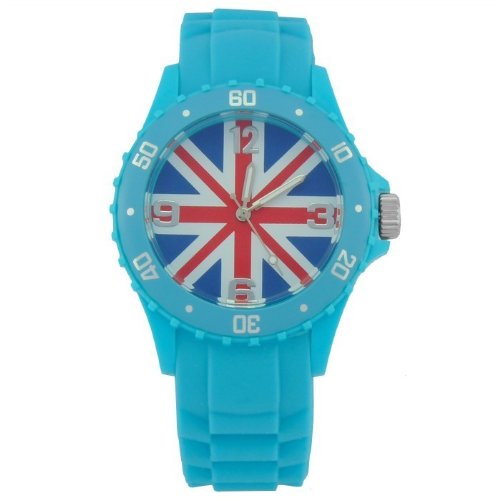 Description : Montre Analogique Femme / Enfant avec bracelet en Silicone de couleur Turquoise et Cadran Rond , Fond Union Jack de Marque Chtime Garantie 1 an - REFERENCE UNION