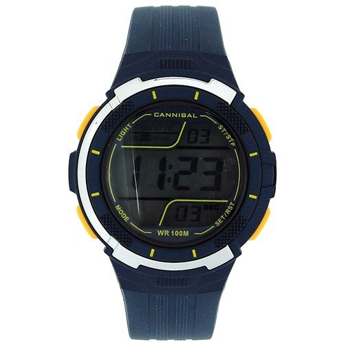 Description : Une montre sportive et robuste par Cannibal, c'est une montre multifonctionnelle qui fonctionne à haute capacité, vous servant aussi bien pour le sport, à la maison ainsi qu'au cours de voyage. Cette montre est le cadeau idéal pour les filles. Caractéristiques Produit: * Mouvement à Quartz. * Affichage Digital. * 1/100 seconde Chronographe. * Chronomètre. * Compte à rebours. * Zone deux-temps. * Fonction Date. * Retro éclairage * Etanche 100 Mètres. Mesures Bracelet: Cette montre est fixée avec une boucle sur n'importe lequel des 9 trous. * Longueur depuis la fin du bracelet jusqu'à l'autre bout:26cm. * Longueur lorsque fixé sur le trou le plus serré:17cm. * Longueur lorsque fixé sur le trou le plus écarté:23cm. Egaleme...