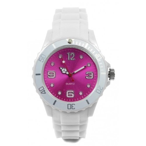 Description : La montre Silicone Watch Color White Child/Enfant est un mixe de design et de couleurs, concu pour les filles comme pour les garcons c'est l'accessoire de mode du moment. Ultra-legere et composee dans des materiaux de qualites, son bracelet en silicone offre un toucher doux et agreable et lui donne un look dynamique et moderne. Un cadran de 38 mm et un bracelet en silicone reglable de 15,5 a 21 cm. Disponible en 13 couleurs.
